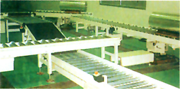 该设备是我厂根据进口分切机组分切后成品膜卷的卸件和输送要求,进行国产配套的成套设备,输送采用PC程序控制,也可手动控制。